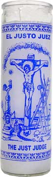 JUST JUDGE Item #5575-465 Candle will burn about 120hrs 2 1/2" wide and 8 1/8" tall Ease your way through the justice system by burning Just Judge Candle before consulting with attorneys or going into court before a judge or jury.