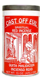 CAST OFF EVIL Item #301-091 15oz (425.2g) Self Lighting, Red Incense When one feels burdened with harmful, sinful or malicious influences, this can serve to expel these destructive powers. Burn daily.